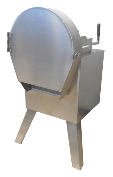 (08.09.2025)Ручная резка на слайсы ВР-303 - это машина для ручной нарезки продуктов (например, овощей) на кольца толщиной от 0,5 до 15 мм. Принцип работы заключается в том, что работник помещает продукт в приемную ячейку, левой рукой прижимает его толкателем, а правой рукой вращает резательный блок, получая на выходе нарезанный слайс (кольцо) заданной толщины.