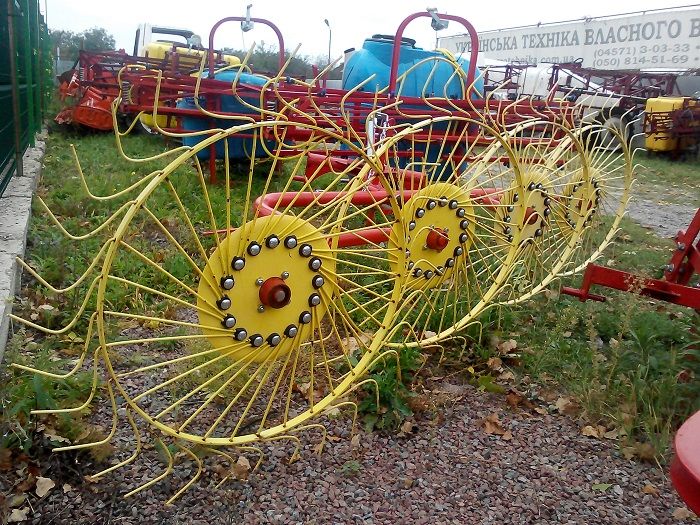 Страна-производитель: Россия Фирма-производитель: СДСМ Состояние: Новое Особенность: среднее колесо Тип тракторных грабель: Грабли-валкообразователи Цена договорная Грабли валковые сеноуборочные (ГВС-6У) позволяют осуществить подготовку свежескошенного сена к уборке другой техникой. Их использование приводит к снижению затрат как времени, так и топлива. Включают в себя восемь основных колес и одно дополнительное посередине с длинными, радиально-ориентированными прутьями, с характерным изгибом.